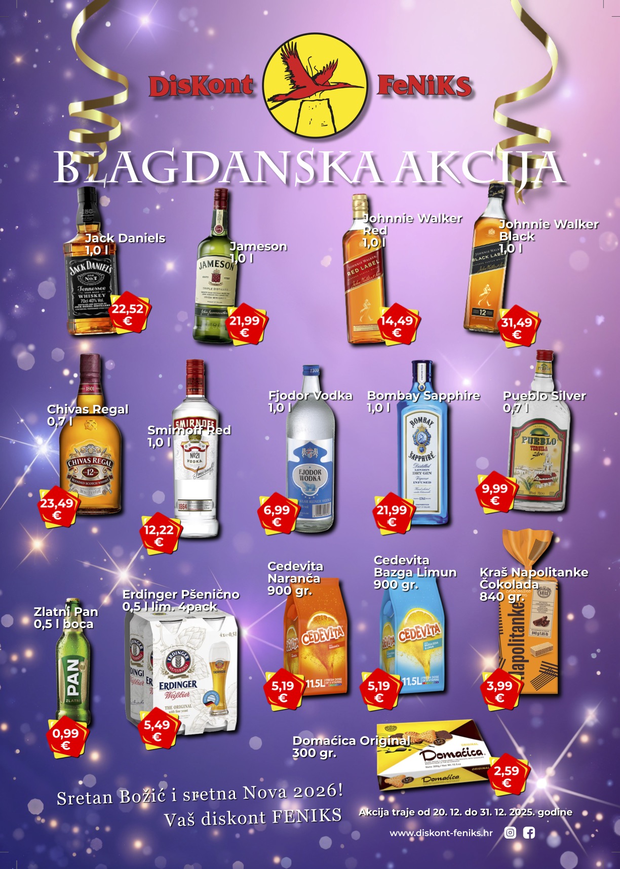 Blagdani su pred vratima, a u Diskontu Feniks pripremili smo posebnu blagdansku akciju uz odlične cijene omiljenih proizvoda koje rado birate za blagdanski stol i darivanje.